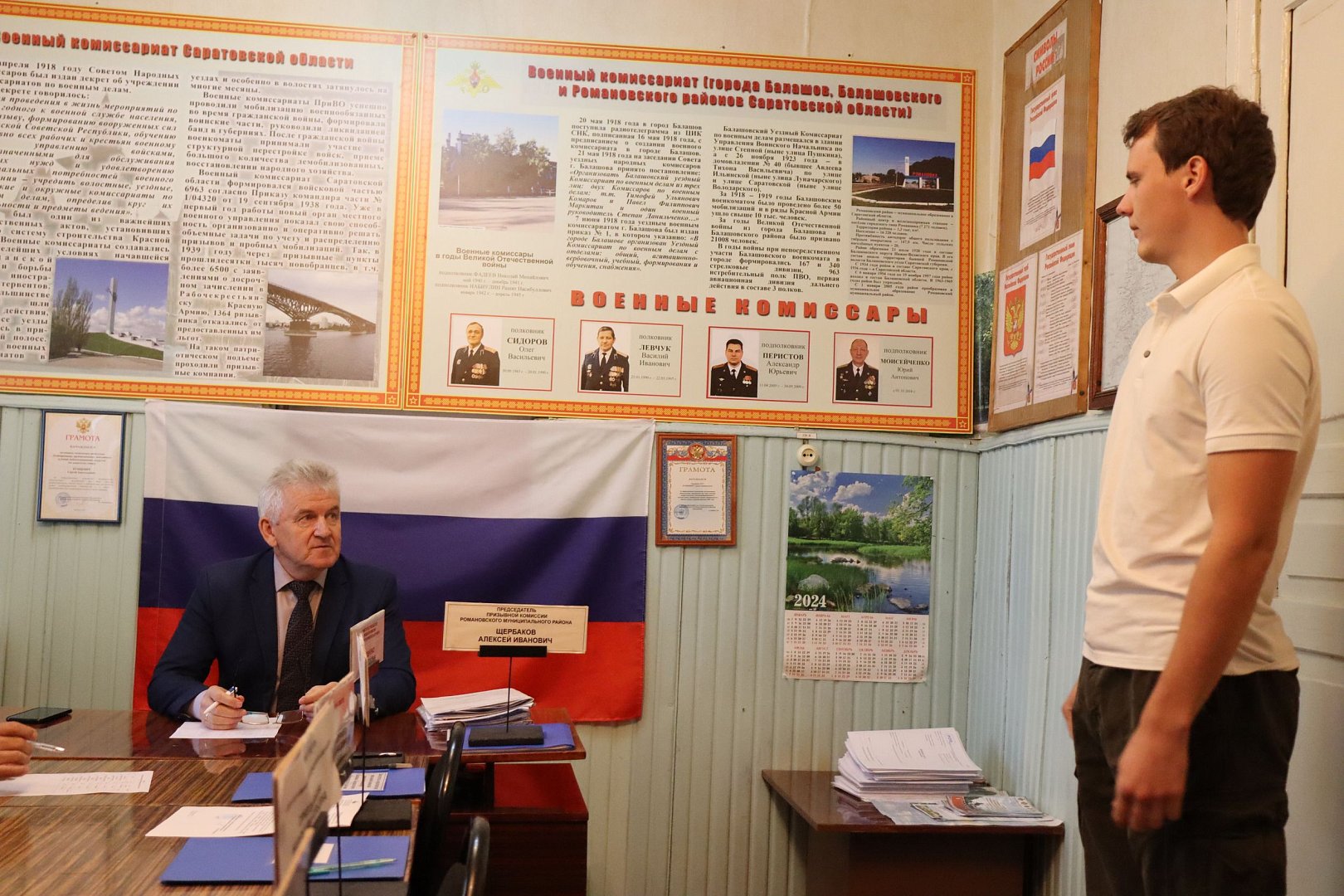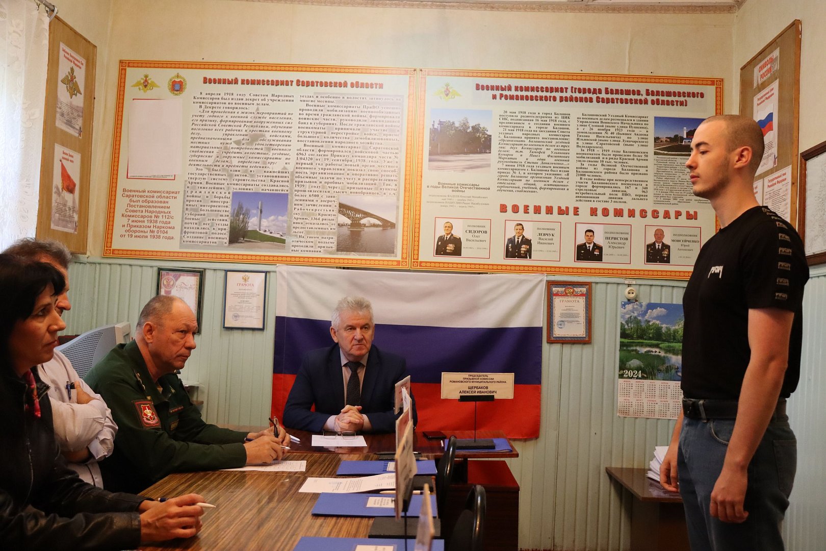Первая осенняя призывная комиссия прошла под председательством главы Романовского района А.И. Щербакова. Участие в ней приняли военный комиссар г. Балашова, Балашовского и Романовского районов Ю.А. Моисейченко, представители районной больницы, администрации, правоохранительных органов, входящие в состав комиссии.