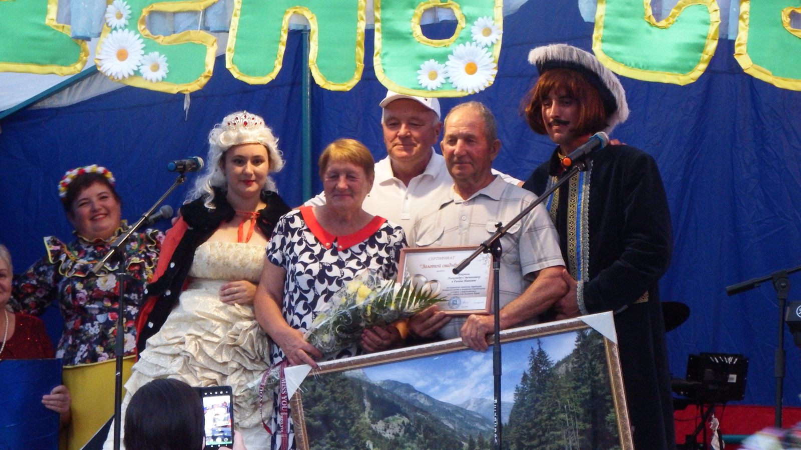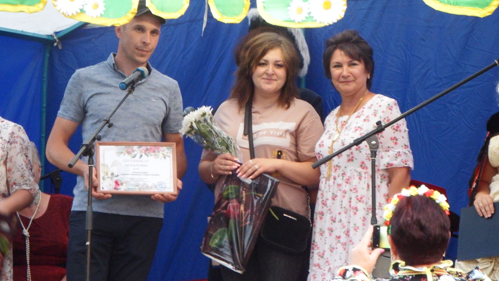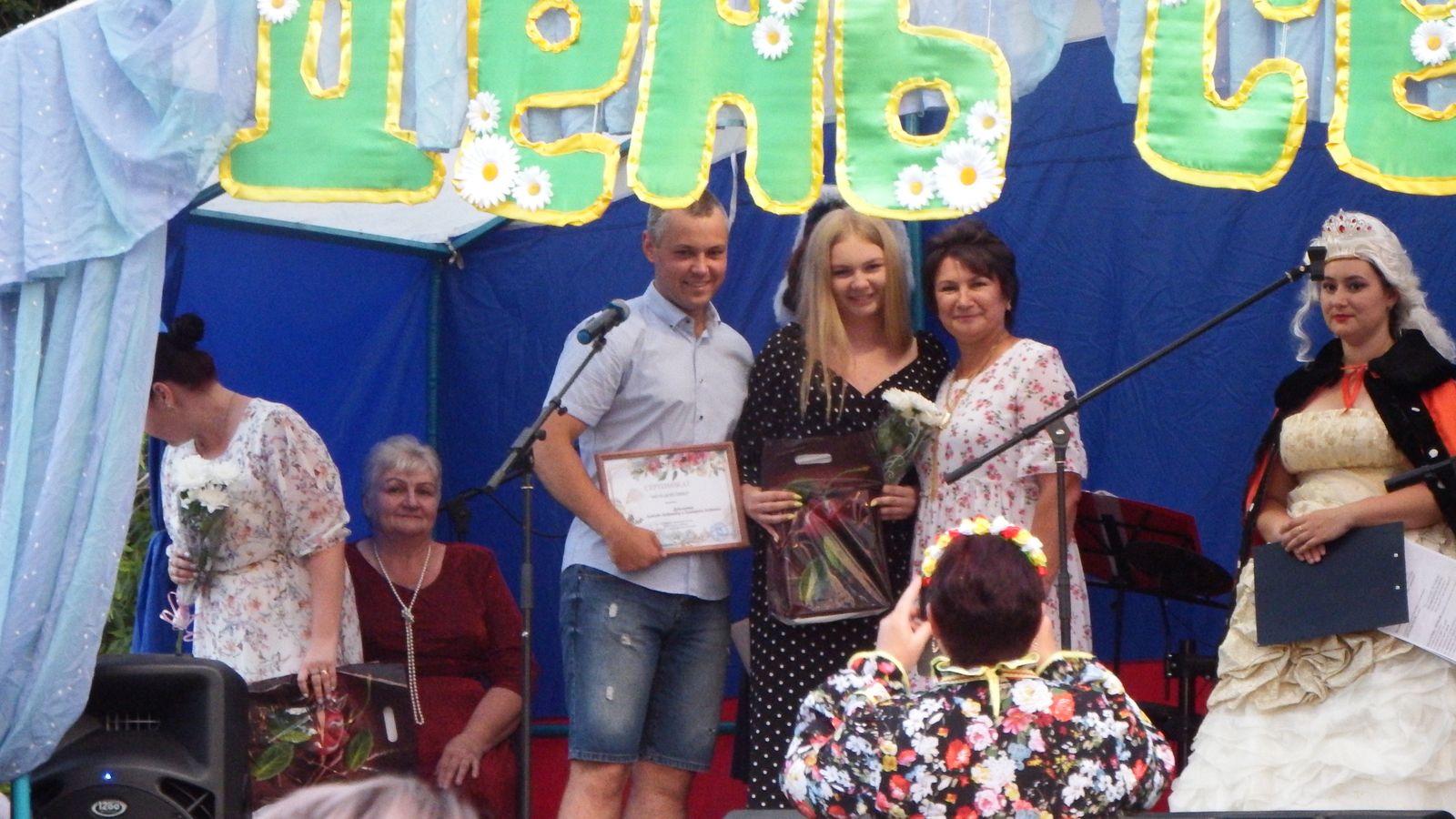 В день юбилейный глава МО Н.В. Соловьева вручила благодарственные письма молодым парам, заключившим брак в текущем году. Это семьи: Алексея и Марии Решетниковых , Виктора и Милы Котельниковых, Алексея и Юлии Ильиных, Алексея и Екатерины Дубининых. Всем селом им пожелали счастья в семейных отношениях.