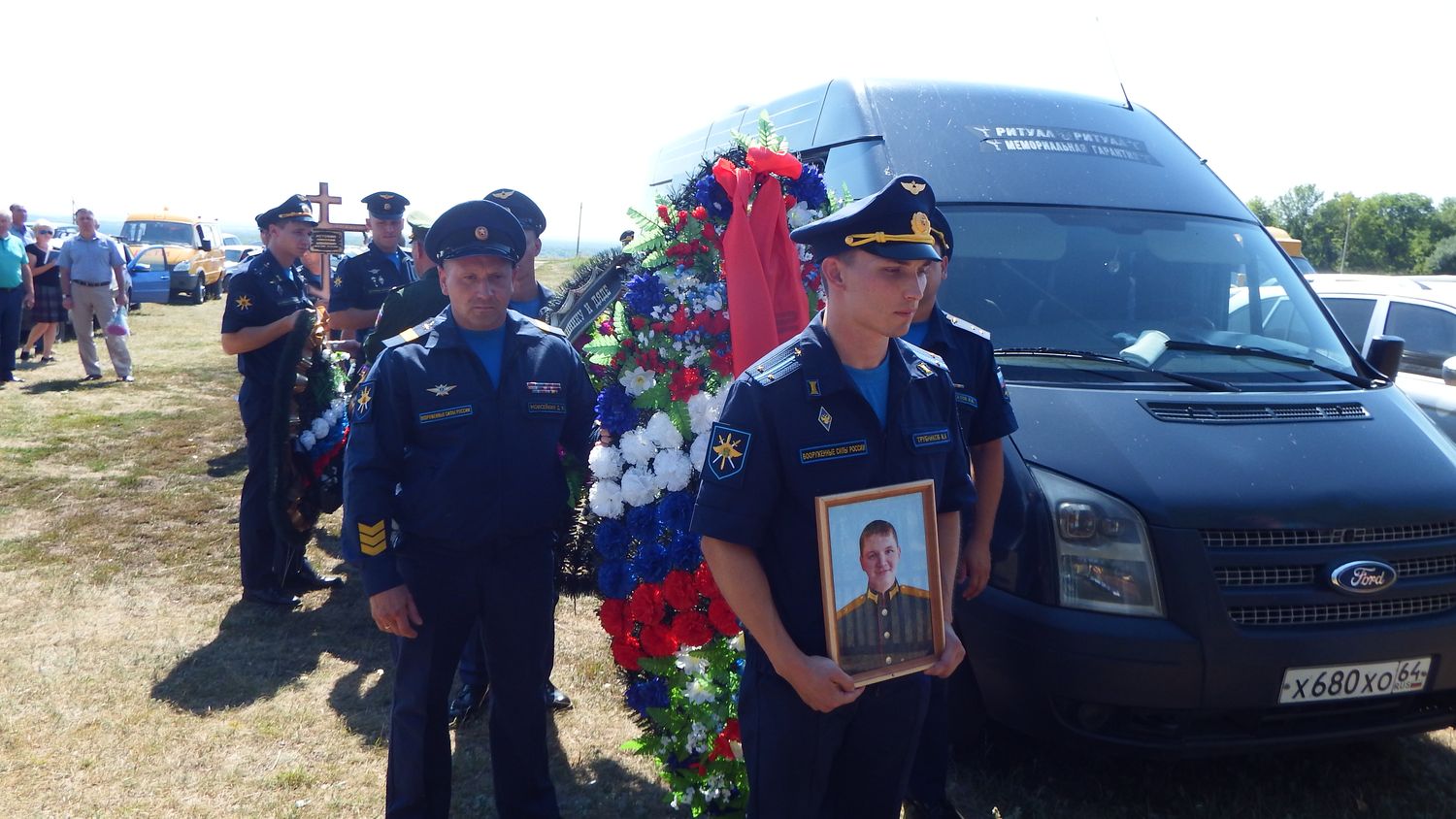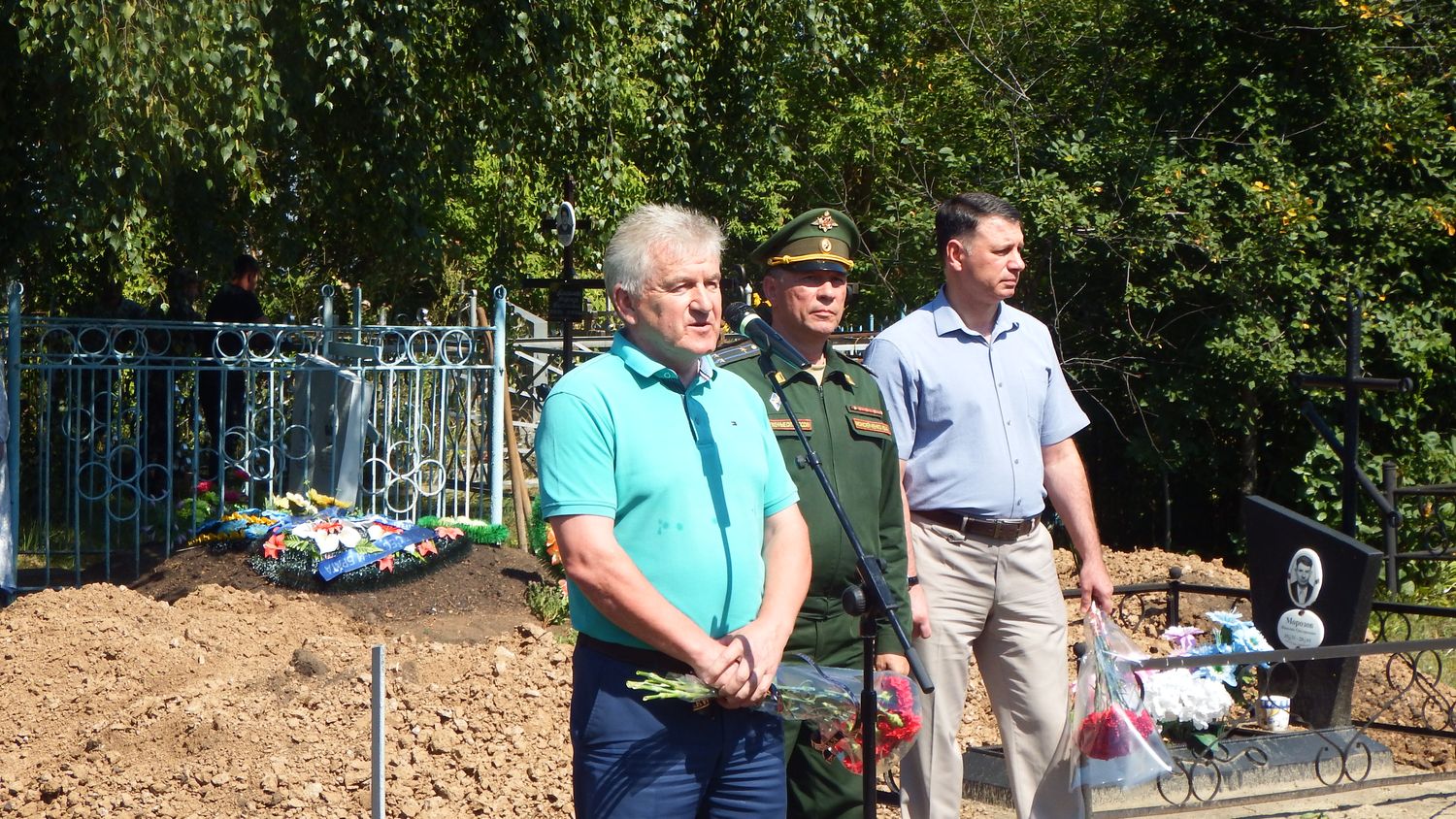 Для прощания с погибшим военнослужащим прибыли: заместитель председателя правительства Саратовской области М.И. Орлов, глава Романовского района А.И. Щербаков, исполнительный секретарь Романовского местного отделения ВПП «Единая Россия» Д.В. Евсюков, военный комиссар города Балашов, Балашовского и Романовского районов Ю.А. Моисейченко, представители одной из воинских частей, составившие почетный караул.