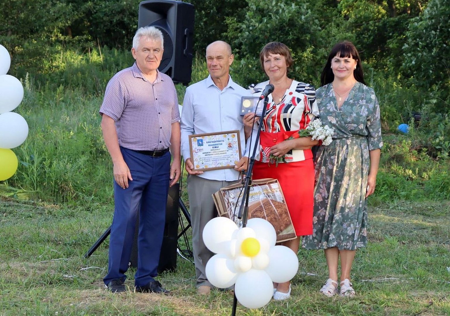 После поздравлений состоялась церемония чествования номинированных семейных пар от каждого поселения, которые проследовали к сцене по специальной дорожке, выложенной из цветов и полевых трав. Выглядело очень красиво и романтично. О каждой семейной паре ведущие успели сказать массу замечательных слов и комплиментов. Дипломами фестиваля и подарками отмечены супруги: Локтионовы Николай и Любовь из с. Подгорное, Юрины Алексей и Анна из с. Памятка, Ойкины Виталий и Елена из пос. Красноармейский, Овчинниковы Александр и Анастасия из с. Малое Щербедино, Васильченко Андрей и Елена из пос. Алексеевский, Степины Александр и Наталия из с. Мордовский Карай, Морозовы Сергей и Нина из с. Бык, Нартовы Александр и Наталья из деревни Вязовая, Калашниковы Алексей и Валентина из р.п. Романовка, Атапины Михаил и Ольга из с. Бобылевка, Атапины Владимир и Нина из с. Осиновка, Шачневы Александр и Валентина из с. Инясево, Журавлевы Владимир и Галина из р.п. Романовка, Невзоровы Николай и Татьяна из пос. Таволжанский, Атапины Василий и Татьяна из с. Усть-Щербедино, Белозерцевы Александр и Антонина из с. Большой Карай.