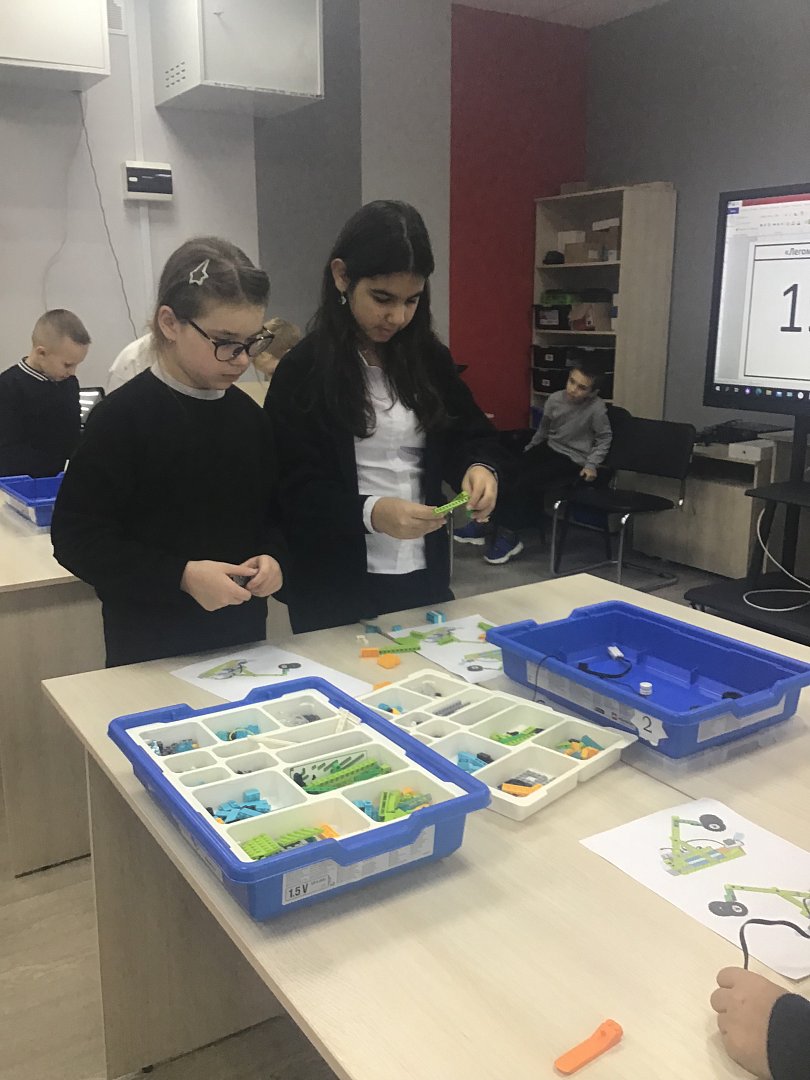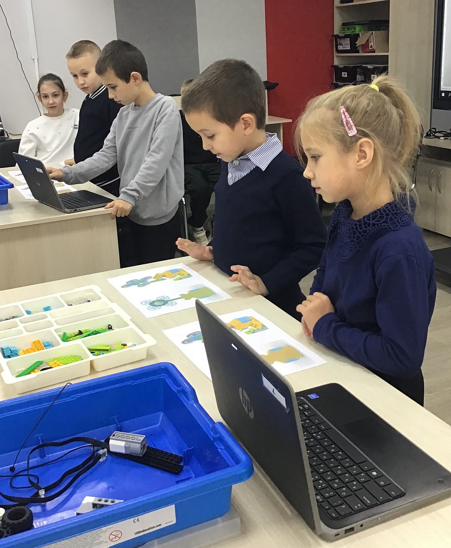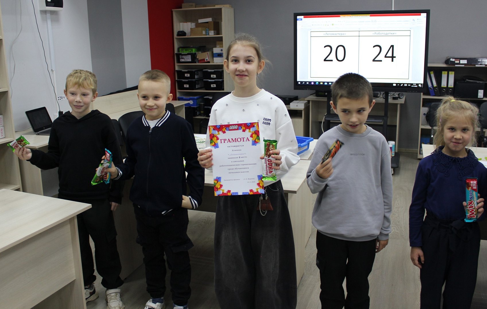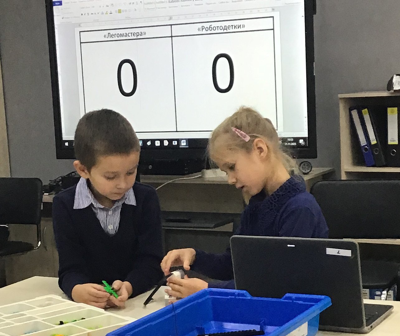 В нашей школе состоялись соревнования по робототехнике среди обучающихся начальных классов. В споре за звание лучших конструкторов роботов сошлись команда 4 класса «Роботодетки» (Жанна Арутюнян, Алена Овчинникова и Алексей Шамин) и команда 3 класса «Легомастера» (Анастасия Захарина и Матвей Щербинин). Кроме того, к каждой команде «примкнули» по 2 второклассника. К «Роботодеткам» - Анфиса Мордасова и Максим Даренков, а к «Легомастерам» - Глеб Щербинин и Виталий Давыдов.