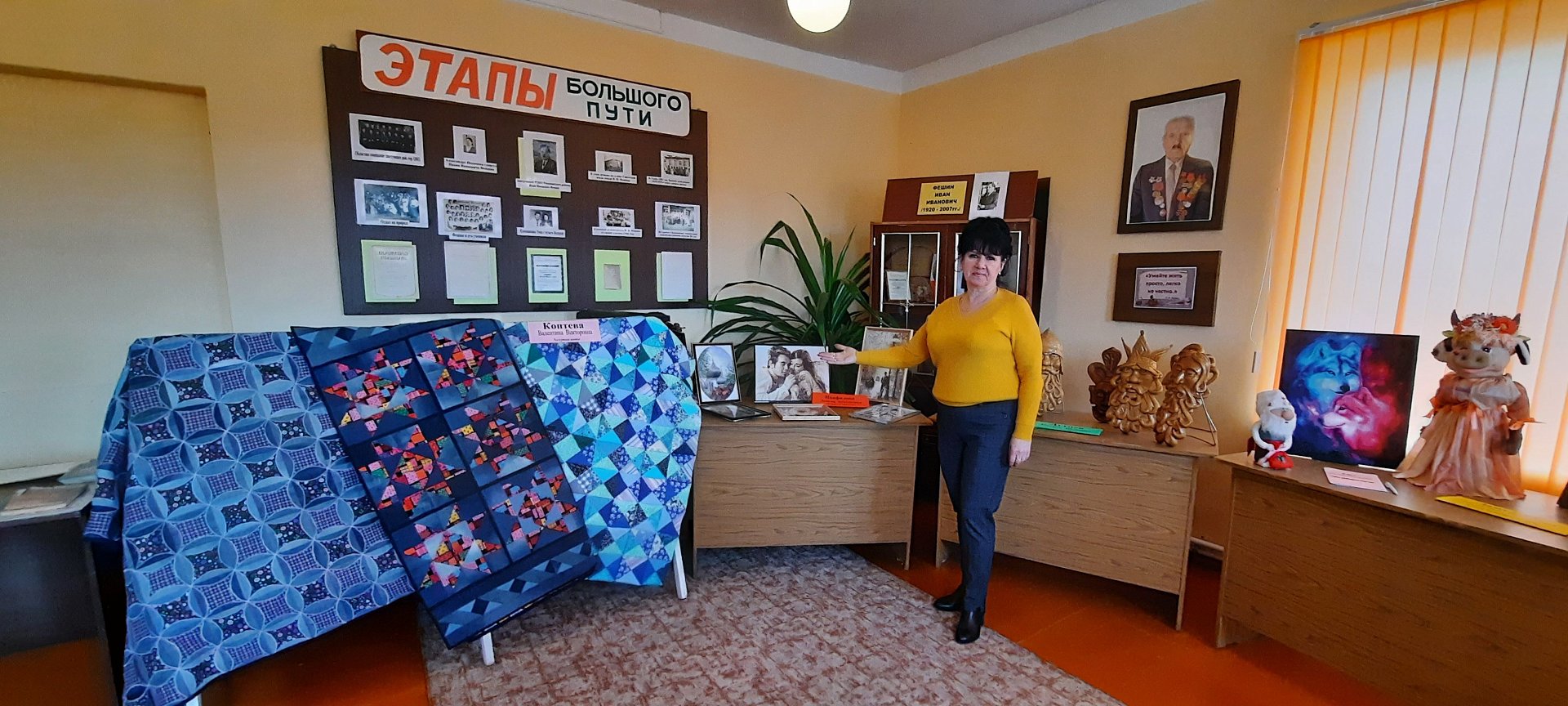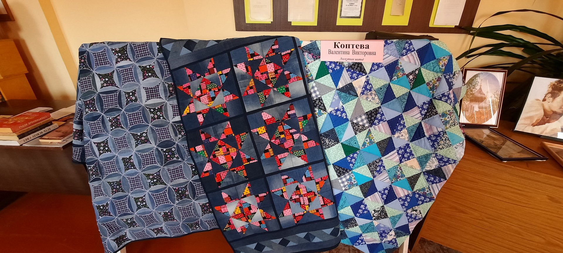 Вот и в этом году весной открылась эта выставка, с которой может ознакомиться каждый желающий. Свои работы в этот раз представили признанные мэтры прикладного творчества - М.И. Лутцев и его работы из дерева, Л.В. Политаева и ее куклы, Н.Ю. Замуленко, которая тоже изготавливает кукол, В.В. Коптева и ее лоскутные одеяла, а также работы из фоамирана, Л.В. Панфилова и ее вышивка. Разноцветье узоров, расцветок и идей предстает перед каждым, кто входит в краеведческую комнату. В этот раз экскурсию нам проводит зав. отделом обслуживания Г.П. Даренская, которая тепло и с любовью ежегодно собирает выставку умельцев.