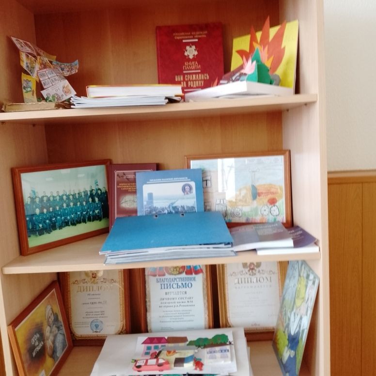 На втором этаже пожарной части ребята увидели комнаты для отдыха и физической подготовки личного состава, а также обратили внимание на музейный уголок, в котором имеются сведения о ветеранах пожарной охраны, материалы об истории развития пожарной части нашего поселка.