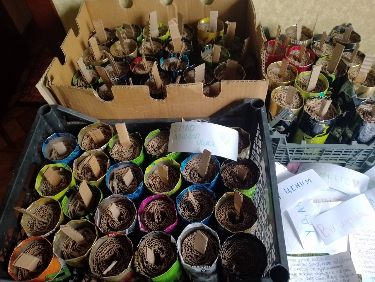 Так, члены кружка Дома пионеров и школьников «Я - волонтер» под руководством педагога Елены Алексеевны Давыдовой с октября на своих занятиях трудятся по изготовлению заготовок для окопных свечей. С этой просьбой обратились старшие волонтеры группы «СвоихНеБросаем-Романовка», что ведет сбор на базе храма, и в Доме пионеров активно откликнулись на эту просьбу. Собственно задача ребят в жестяные банки скрутить картонную бумагу, вставить фитиль, а уж заливку воска проводят старшие волонтеры из группы. Всему приходится учиться и перестраиваться с мирных колес на военные темы. Многое не знаем, поэтому с техникой изготовления окопных свечей помог интернет. А теперь уже, кроме заготовок, Е.А. Давыдова и ребята сами проводят мастер-класс. А вот идея каждую свечу подписывать пожеланиями пришла именно ребятам. Каждый пишет свое пожелание: «Возвращайтесь домой», «Мы вас ждем», «Тепло родного дома» и другие. Бойцы постоянно рассказывают, что согревают их там, на позициях, не зажженные свечи, а эти искренние слова, детские пожелания. «Дети с удовольствием отозвались на просьбу волонтеров и активно, с радостью делают свечи», - рассказывает куратор Е.А. Давыдова. И уже несколько партий подготовленных свечей отправились к солдатам.