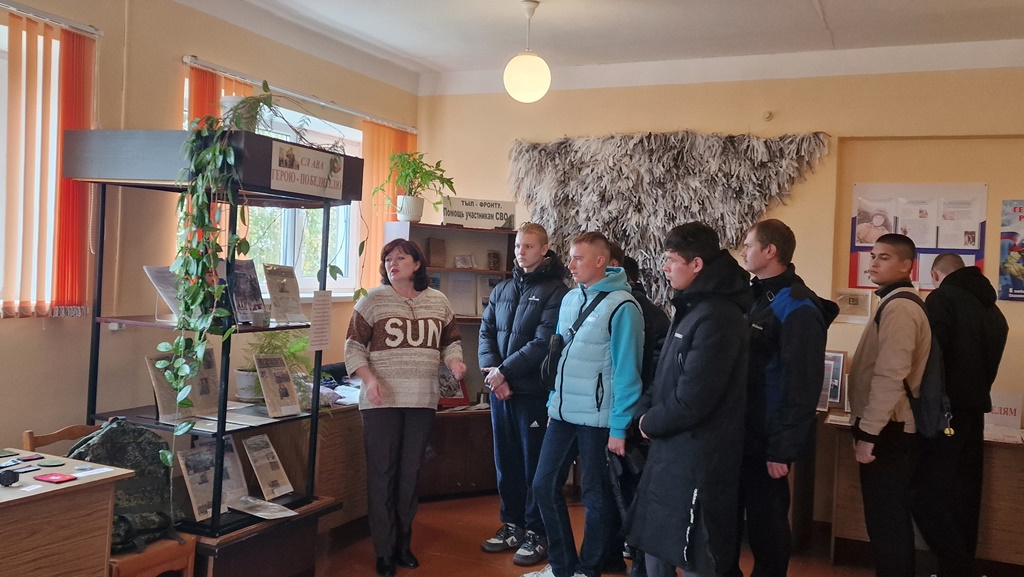 Первым пунктом становится посещение музея боевой и трудовой славы Дома пионеров и школьников, где экскурсию провела педагог Н.Л. Суздаленко. После традиционно ребята приходят почтить всех погибших и возлагают венок к памятнику воинам-романовцам, погибшим в годы Великой Отечественной войны. Одним из важнейших мест для посещения в этот день вот уже больше года является музейная экспозиция, посвященная специальной военной операции в центральной библиотеке им. И.И. Фешина. Библиотекарь читального зала А.А. Канищева знакомит ребят с главными направлениями экспозиции. В этот день на посещение отводится всегда немного времени, но здесь всегда готовы провести экскурсию.
