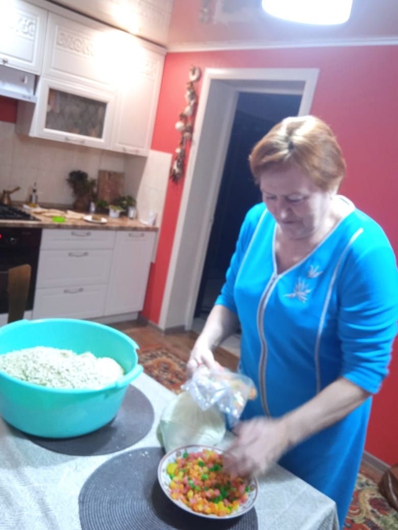 Хотела поделиться тем, что делаю я. Это сухие каши для солдат. Покупаю сама ингредиенты. Делюсь рецептом. На 3 пачки овсяных хлопьев (я беру Экстра 3, пр-во Беларусь), 500 г сухого молока, 2 ст. ложки соли и 1,5 ст. сахара. Все смешиваю в сухом виде и расфасовываю в пакеты по 6-8 столовых ложек порция. Иногда добавляю цукаты. Также сделала много омлетов из яичного меланжевого порошка, сухого молока и соли. Может, одной и дороговато, но мои дорогие подруги мне помогают - О. Дубинина, С. Семенова, И. Сокол. Поэтому в эти дни поста, да и позднее, предлагаю вам, дорогие читатели, направить все свое умение и сердце на помощь фронту - кто рублем, кто участием, а кто молитвой.