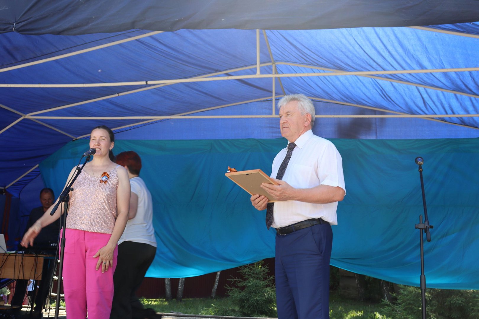 В наше время и на празднике России, конечно, не обойтись без чествования тех, кто с оружием в руках защищает сегодня свою Родину. Глава района вручил благодарственные письма и памятные подарки нашим землякам, бойцам СВО - небольшую награду за стойкость духа, боевое мужество, верность Родине. Ведь именно это сегодня главные их качества.