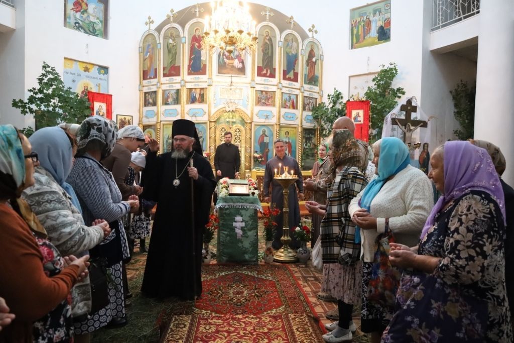 После Божественной Литургии верующие прошли вокруг храма крестным ходом. Владыка Тарасий поздравил жителей села с престольным праздником и пожелал всем здоровья и мира, постоянно приходить в храм на воскресные службы и молиться о мире.